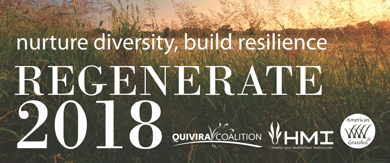 Join us for our 2018 Regenerate Conference Nurture Diversity, Build Resilience Hotel Albuquerque, Albuquerque, New Mexico October 31 – Nov 2, 2018 with optional Regenerative Grazing Workshop on Nov 3, 2018 Click here for more information.